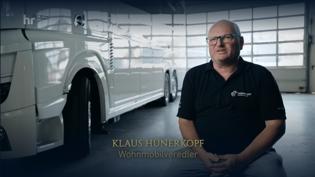 Wenige Autostunden von Frankfurt entfernt baut Klaus Hünerkopf in Neukirchen (Knüll) Luxus auf Rädern. Seine maßgeschneiderten Wohnmobile sind rollende Villen, individuell gefertigt nach den Wünschen seiner Kundinnen und Kunden. Ob integrierte Sportwagenrampen oder klimatisierte Hundesuiten mit Dusche und Waschmaschine – Hünerkopf erfüllt nahezu jeden Wunsch und steht für höchste Qualität und Detailverliebtheit.