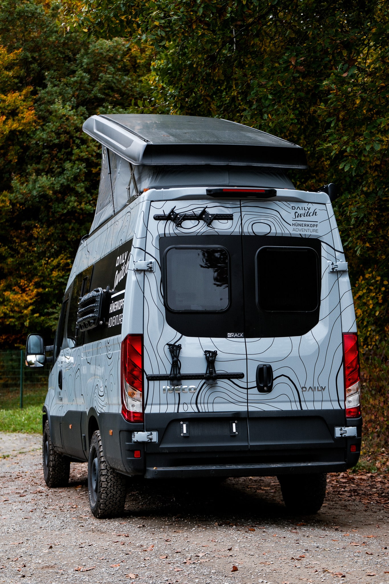 Auch in Sachen Komfort und Funktionalität lässt das Fahrzeug keine Wünsche offen: Wie beim bekannten Daily Switch sind Standheizung und Isolation bereits serienmäßig integriert. Im Heckbereich wurde zusätzlich ein Fahrradträger von Push Components installiert, perfekt für alle aktiven Reisenden.
